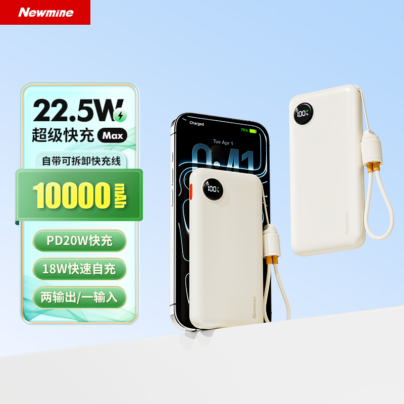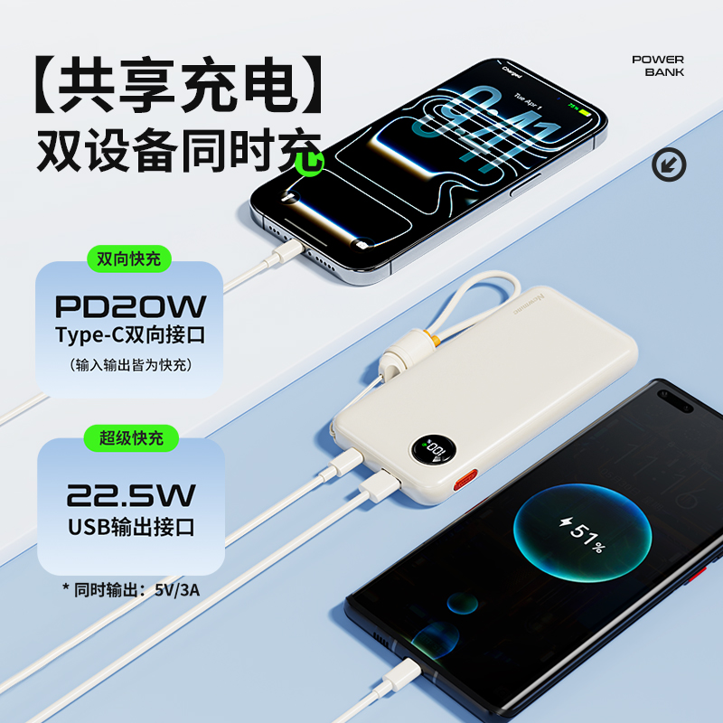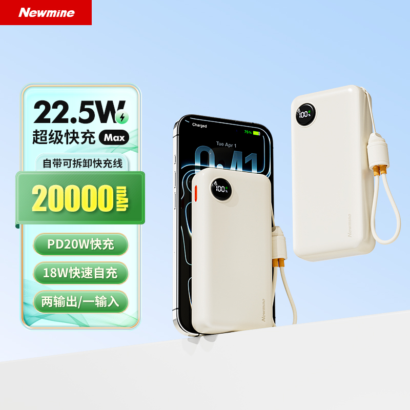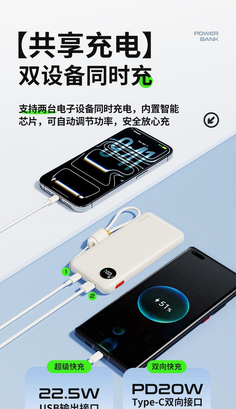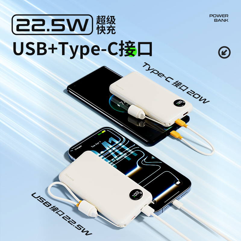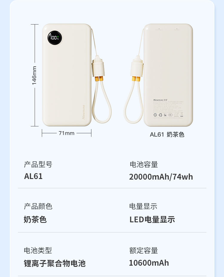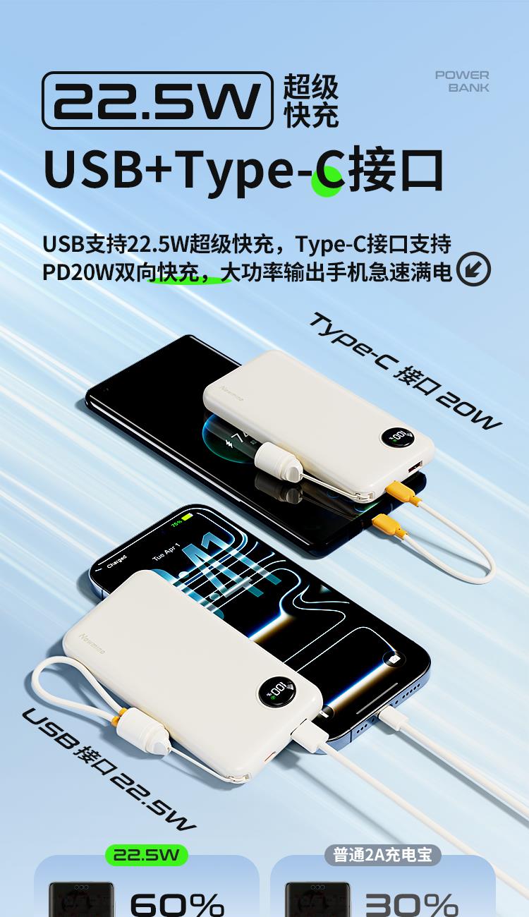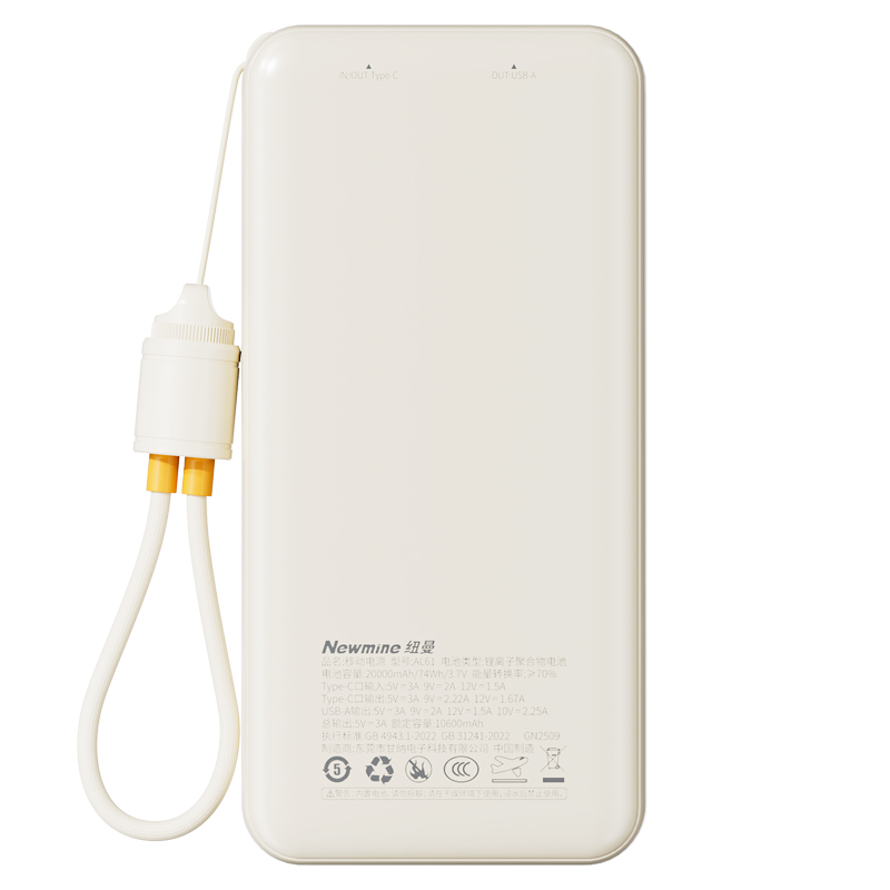 纽曼2万毫安充电宝自带T快充线22.5W快充AL61